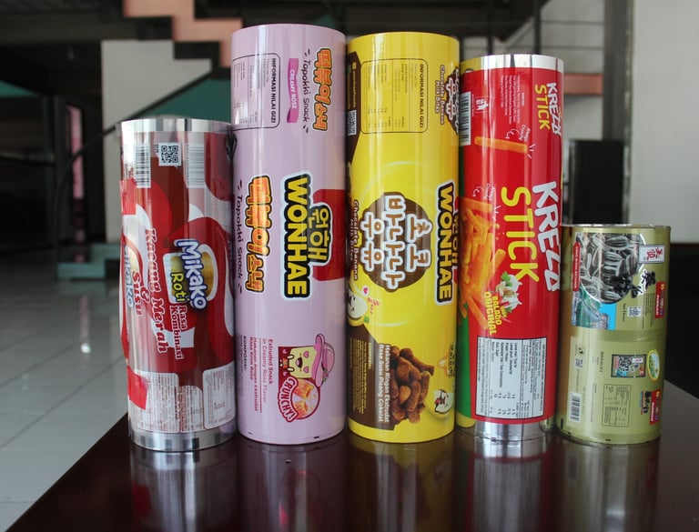 Roll stock packaging adalah bahan kemasan fleksibel berbentuk gulungan, ideal untuk industri makanan, minuman, obat, dan produk non-food. Terbuat dari material berkualitas food grade (PET, OPP, Nylon, Aluminium Foil, atau kombinasi multilayer), roll stock ini mudah diproses dengan mesin form-fill-seal (FFS).