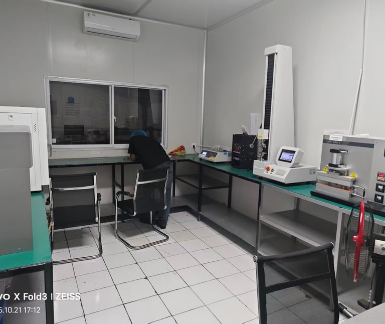 Laboratorium di PT Yongbao Pack Industri berfungsi sebagai pusat Kendali Mutu (Quality Control/QC) dan Jaminan Mutu (Quality Assurance/QA) untuk kemasan makanan. Fungsi utamanya adalah memastikan produk kemasan fleksibel, food box, dan cup sealer yang dihasilkan memenuhi standar keamanan pangan (Food Grade), kualitas cetak, dan daya tahan yang ketat sebelum sampai ke tangan pelanggan.